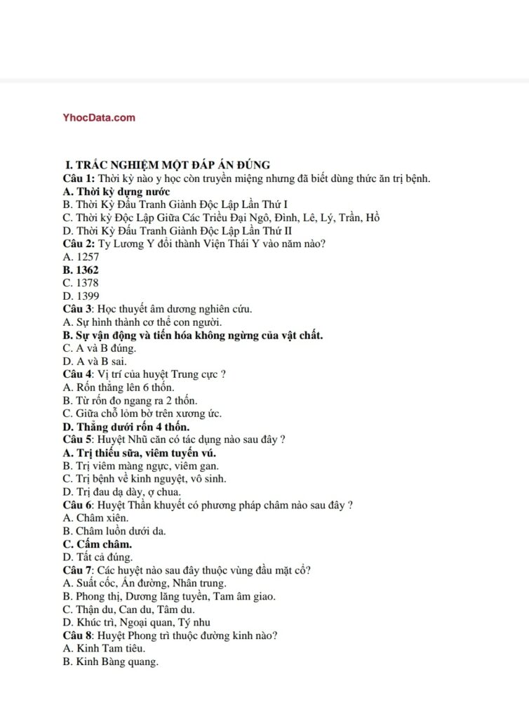 [Tài Liệu] 600 Câu Hỏi Trắc Nghiệm Y Học Cổ Truyền Có Đáp Án