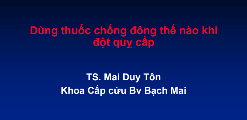 [ad_1] Dùng thuốc chống đông thế nào khiđột quỵ cấp TS. Mai Duy Tôn Khoa Cấp cứu Bv Bạch Mai Nội dung • Các thuốc chống đông trong điều trị đột quỵ não cấp • Các chỉ định dùng thuốc chống đông trong đột quỵ não cấp • Xử trí các trường hợp đặc biệt […]